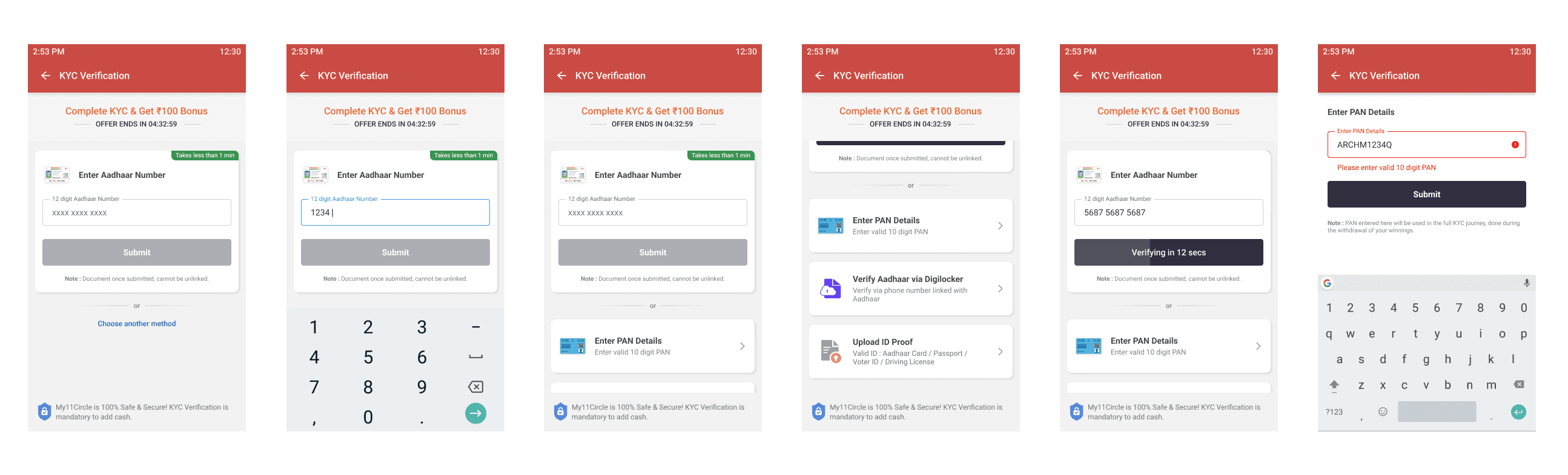 Found that users feel hesitant sharing Aadhaar upfront but are comfortable confirming PAN details.