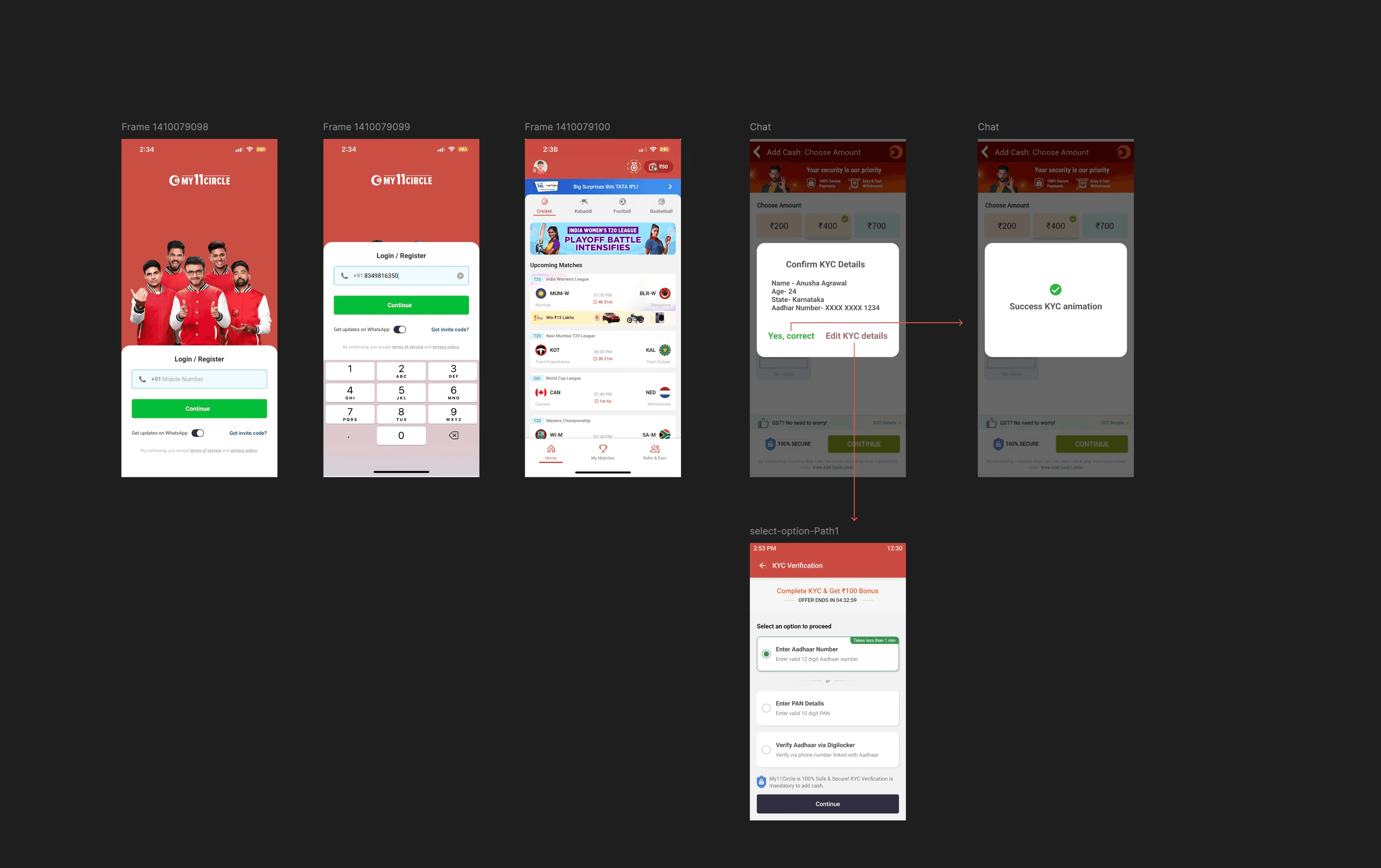 Currently, 60% of My11Circle users successfully complete the Aadhaar Lite flow to become partially KYC verified. However, a significant drop-off occurs before the first Add Cash transaction. Users hesitate to share personal details on a platform they haven’t played on yet, impacting conversion rates.